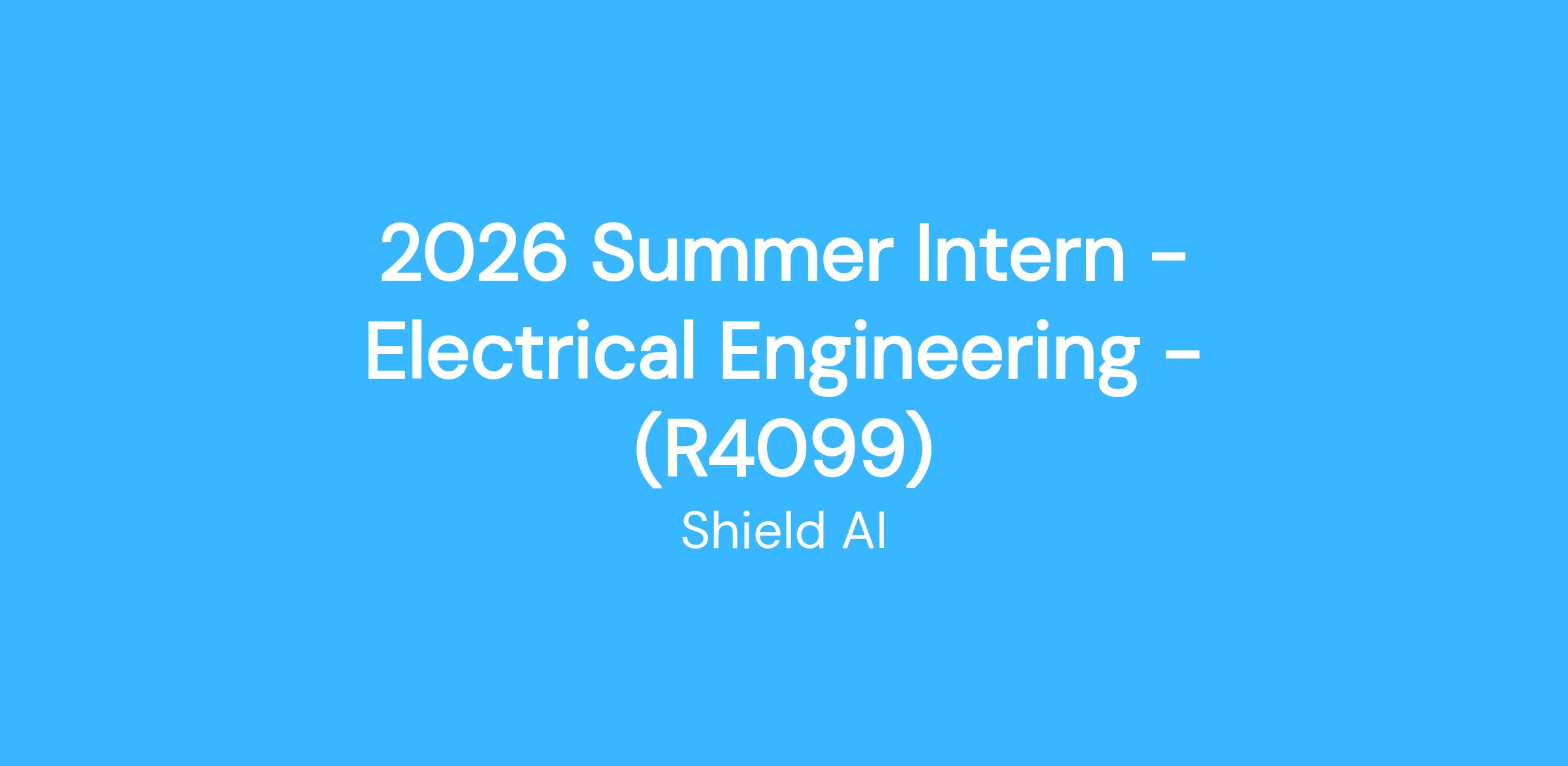 Are you a passionate and innovative Electrical Engineering student looking to help develop state-of-the-art AI products? Are you eager to make a positive difference in the world? Do you want to work alongside mission-driven and values-focused teammates? Shield AI is just the place for you! Join us and help define elegant, high-performance computing, sensing, communication, and power systems.