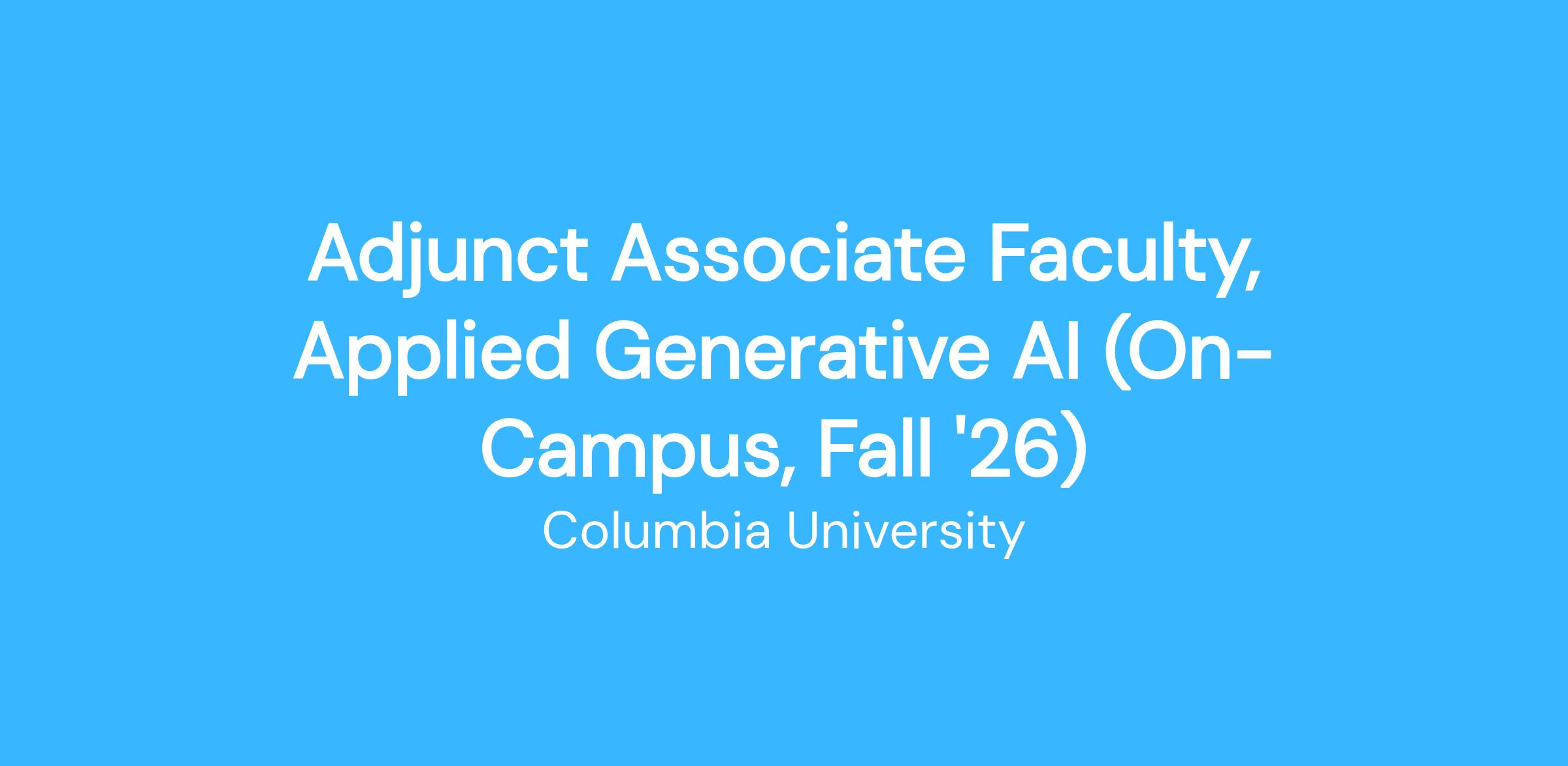 Seeking analytics professionals to serve as a part-time Associate for a graduate-level course on Applied Generative AI. An Associate is a faculty line junior to a Lecturer, that provides subject matter expertise and supports the instructional process for a course section. Serving as an Associate is an outstanding way to gain exposure to graduate-level teaching at Columbia University.