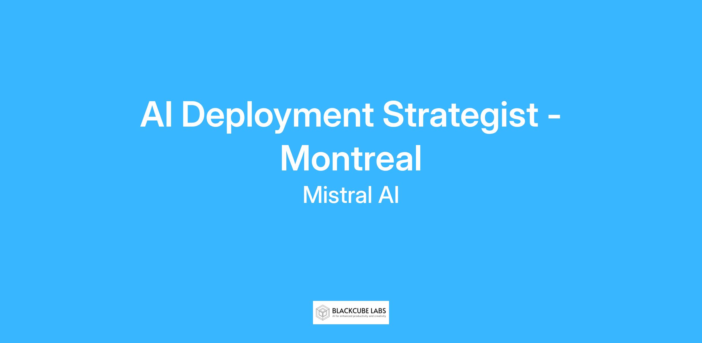 As our first AI Deployment Strategist in Canada, you will drive the adoption and deployment of Mistral’s AI solutions, working closely with customers from strategic vision to production implementation. This role sits at the intersection of business strategy, AI innovation, and hands-on deployment, ensuring our customers achieve transformative outcomes.