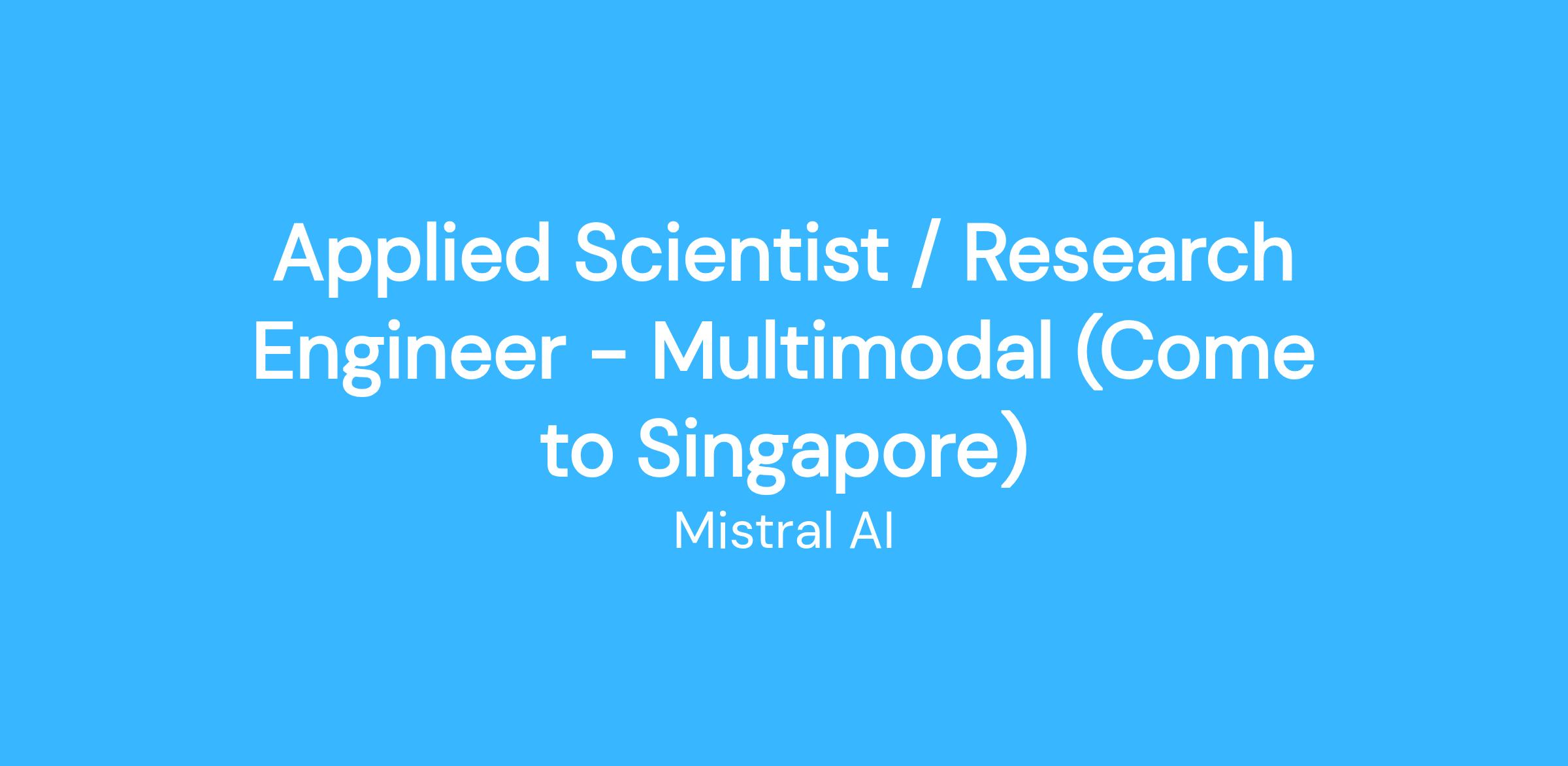 Mistral AI is seeking world class Applied Scientists and Research Engineers who wish to relocate to Singapore.