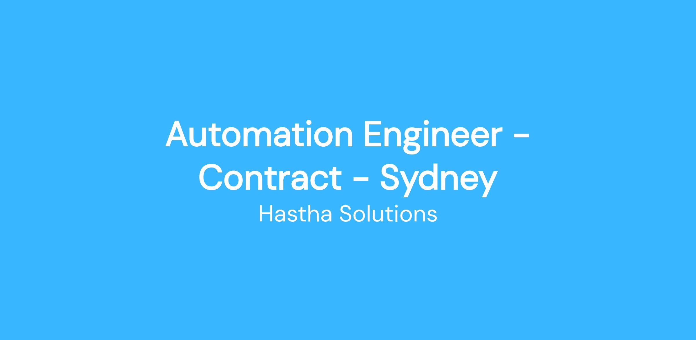 Automation Engineer - Contract - Sydney