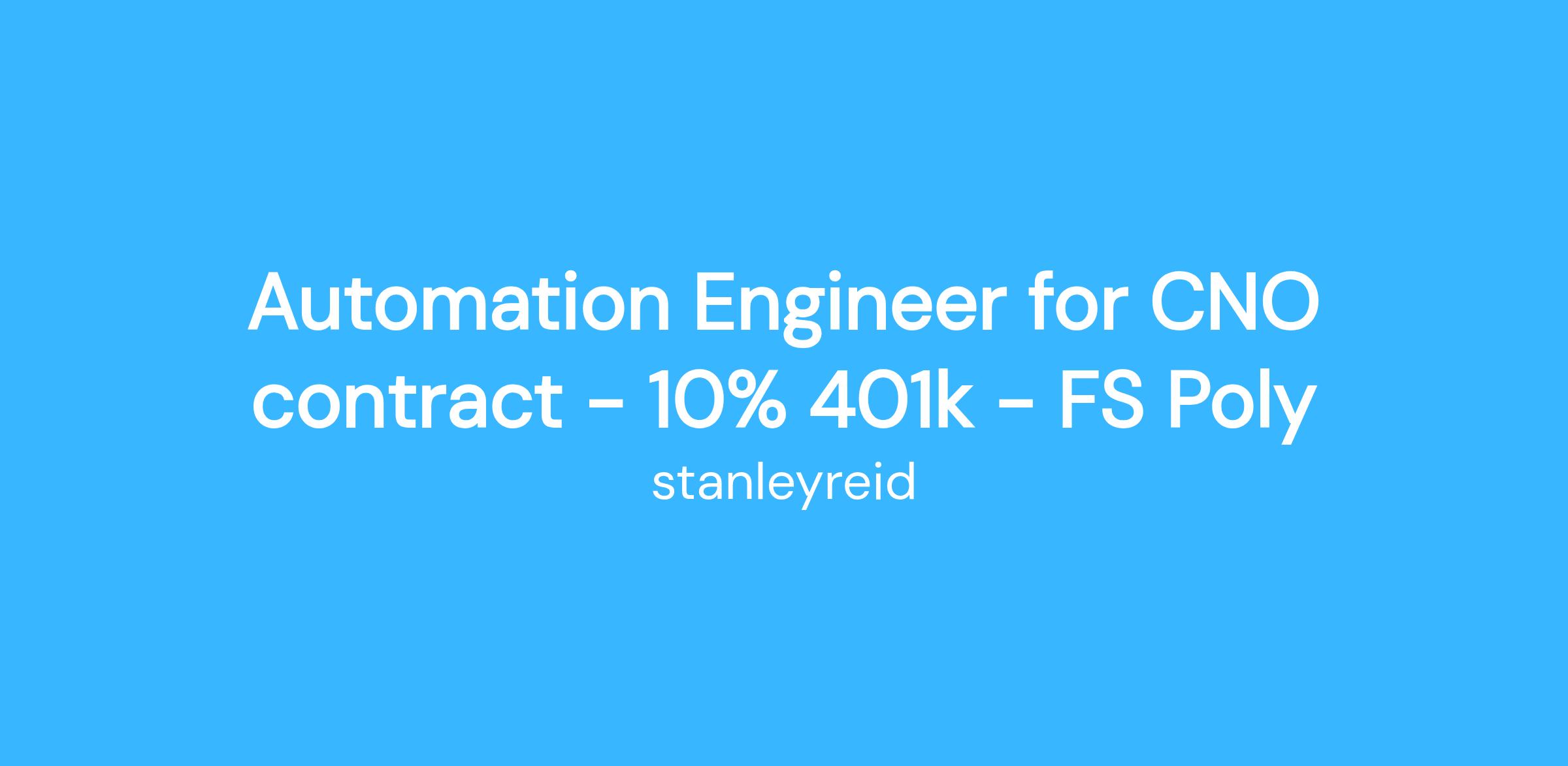 Automation Engineer for CNO contract - 10% 401k - FS Poly