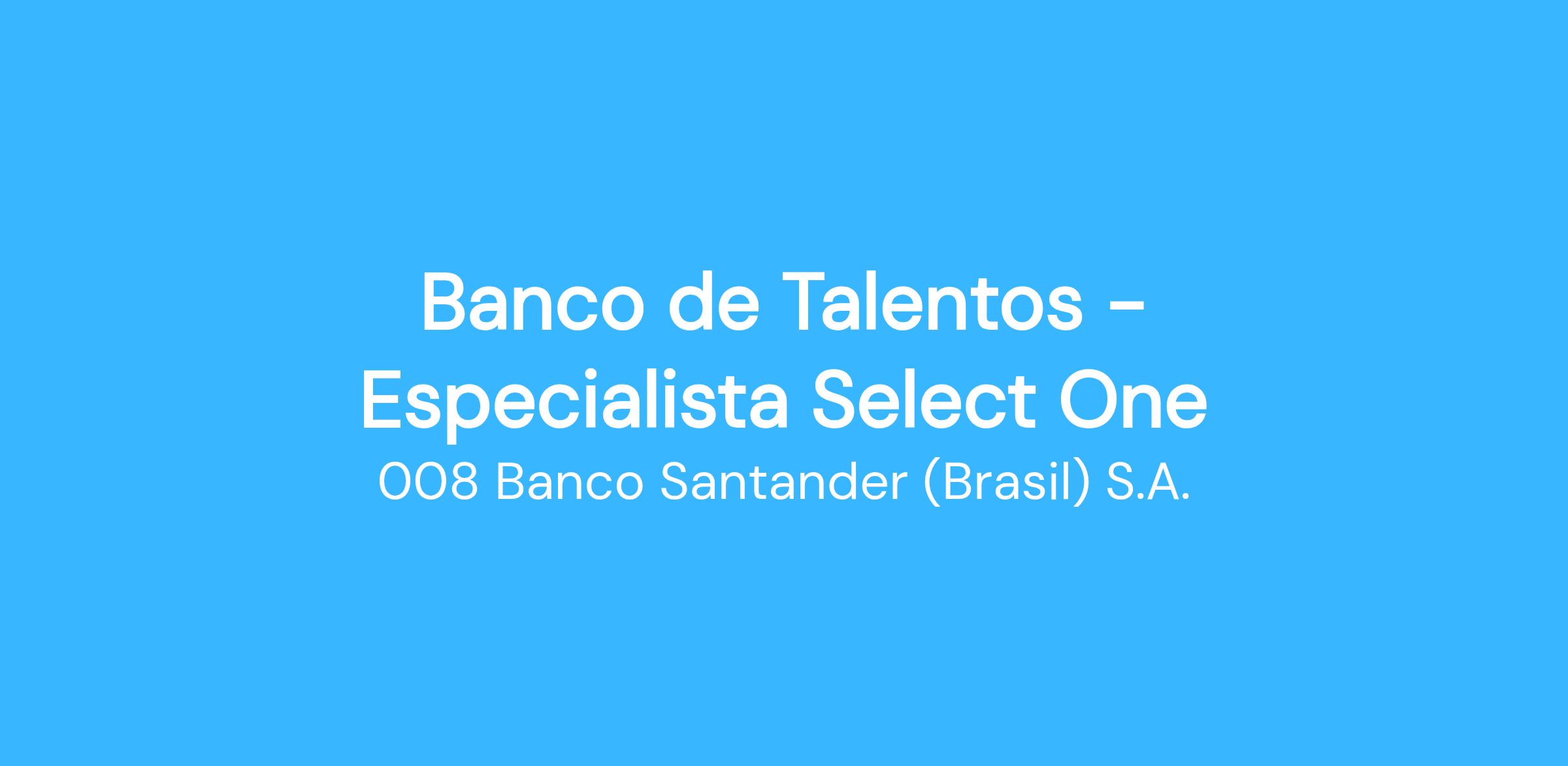 Temos uma vaga para você se tornar Especialista Select One, onde você será encarreirado como Especialista, sendo o principal conhecedor da sua área.