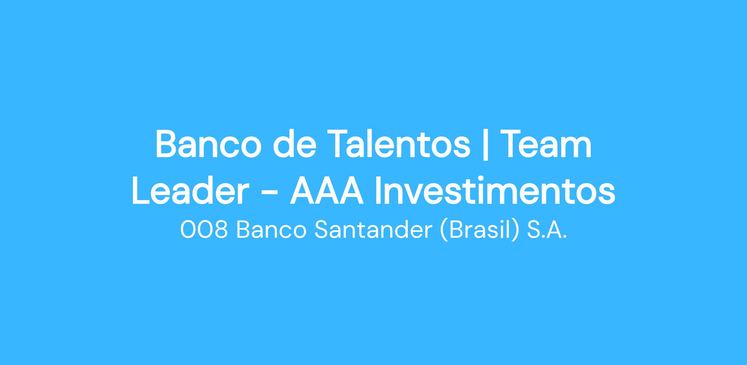 O AAA é uma corretora do Grupo Santander, com o propósito de apoiar todos os nossos clientes. Oferecendo uma assessoria personalizada, baseada no perfil investido, objetivos e momento de vida do nosso cliente.