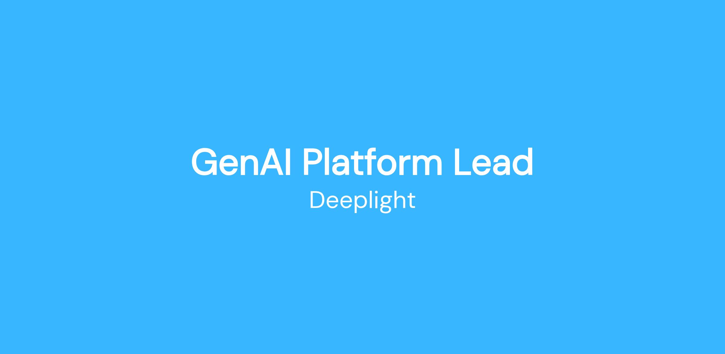 As the GenAI Platform Lead, your responsibilities will include: