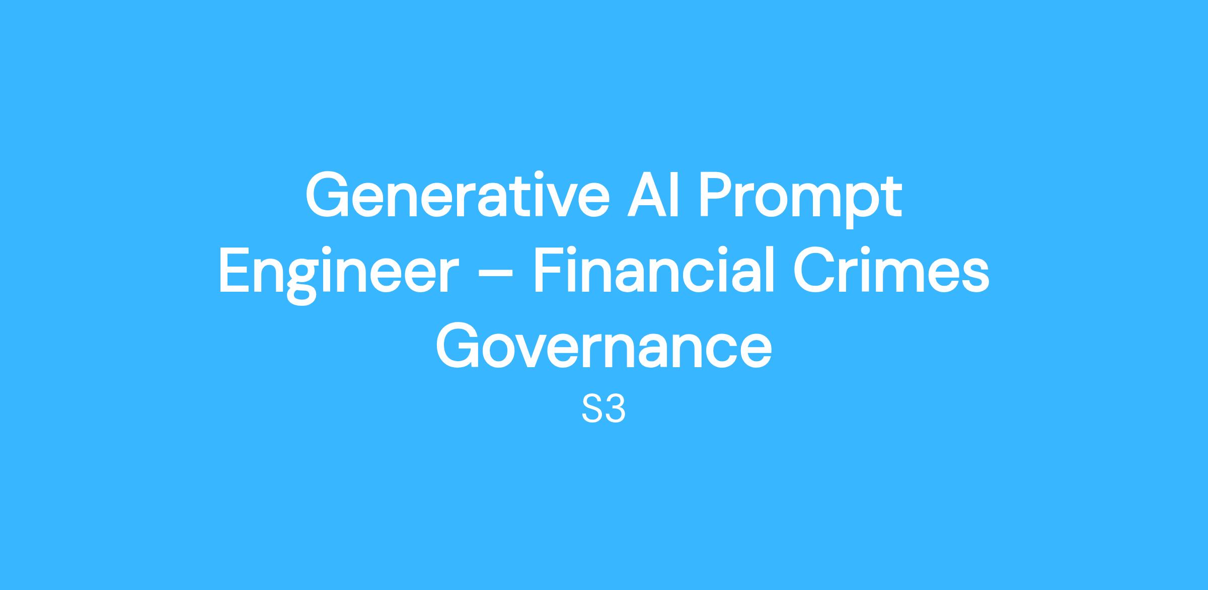 A leading financial services organization is seeking a consultant to support its Financial Crimes Risk Management Governance team by developing and applying generative AI prompt solutions that improve the quality, consistency, and efficiency of financial crimes governance processes.