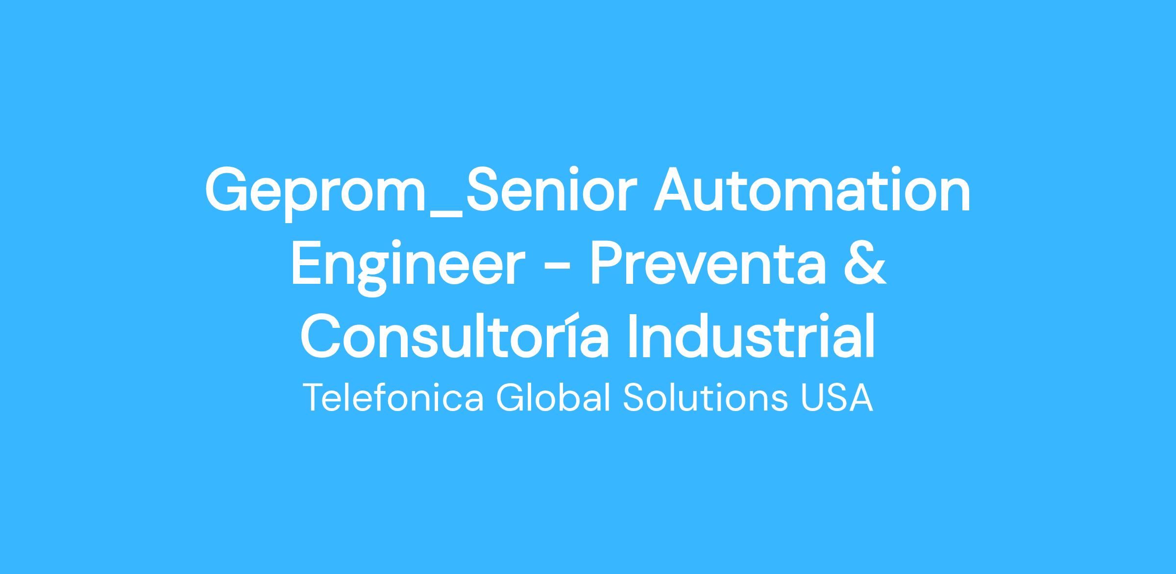 En Geprom, Part of Telefónica Tech, buscamos un/a Senior Automation Engineer con sólida experiencia en automatización industrial, capaz de participar activamente en la definición de soluciones técnicas complejas, la elaboración de ofertas detalladas y la ejecución de consultorías industriales orientadas a la mejora continua y modernización de instalaciones.