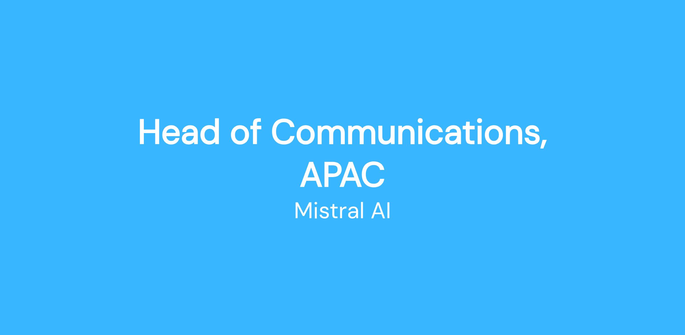 As Head of Communications APAC Lead you will play a crucial role in shaping our company's narrative and ensuring our vision, mission, and values are effectively communicated to all stakeholders in the region and support our business acceleration in the Asian market. You'll build compelling messaging to ensure Mistral's USP is clear and different from other players in the market and drive media relations to develop strong visibility for Mistral in the press.