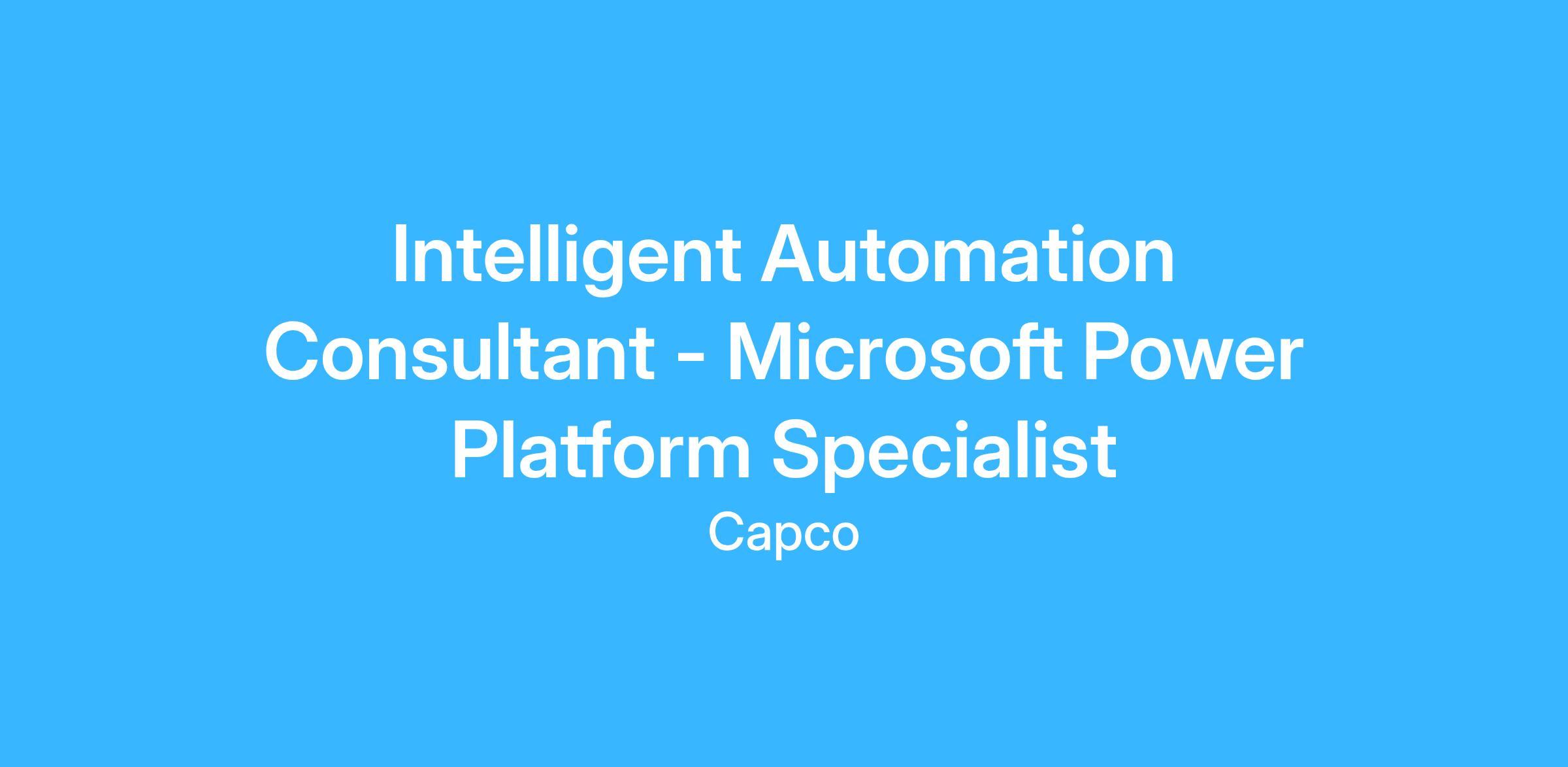Intelligent Automation Consultant – Microsoft Power Platform Specialist