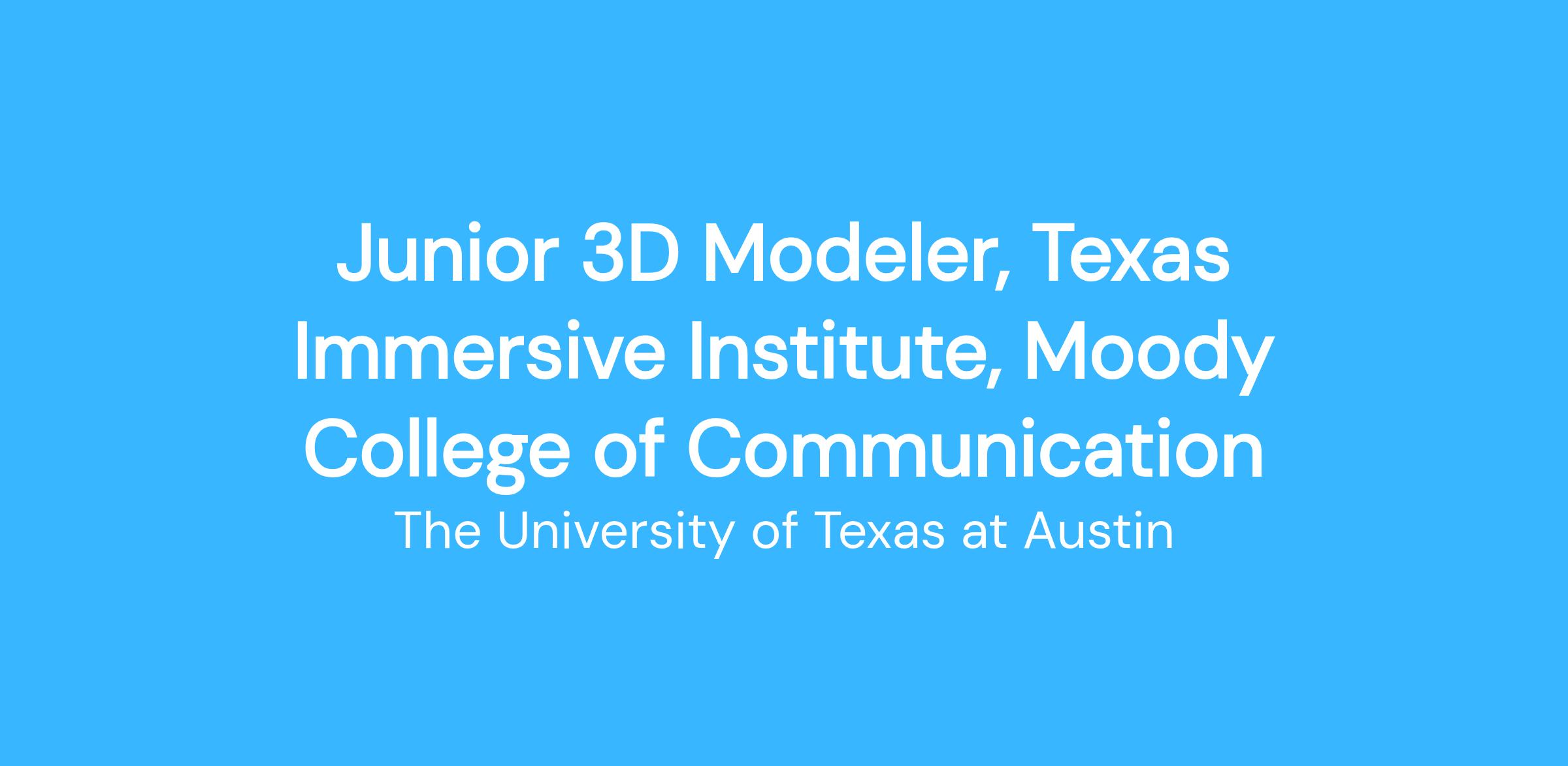 Junior 3D Modeler, Texas Immersive Institute, Moody College of Communication----