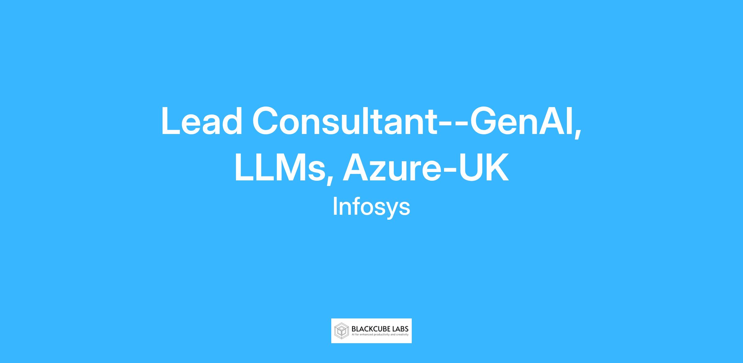 Lead Consultant--GenAI, LLMs, Azure-UK
