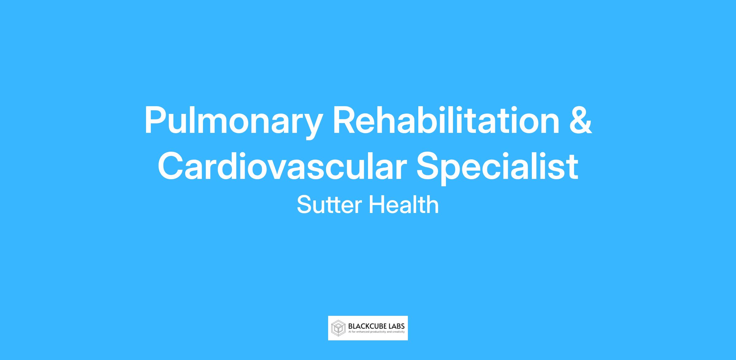Coordinates the resources and services of outpatient Pulmonary Rehabilitation (PR) Program to help restore pulmonary patients to an optimal level of function while alleviating symptoms and complications of respiratory impairment. Provides age-based care relevant to the development/psychosocial needs, environmental safety, educational needs, communication style, and level of understanding for each patient population—pediatric, adolescent, geriatric. Works to reduce the readmission of patient populations with PR qualifying diagnoses (e.g., chronic obstructive pulmonary disease (COPD)) by providing transitional support, follow-up and timely access to the PR Program, and visibility to community resources/agencies. Offers oversight for the PR Program to ensure adequate staffing and provide the highest quality of patient care.Job Description: