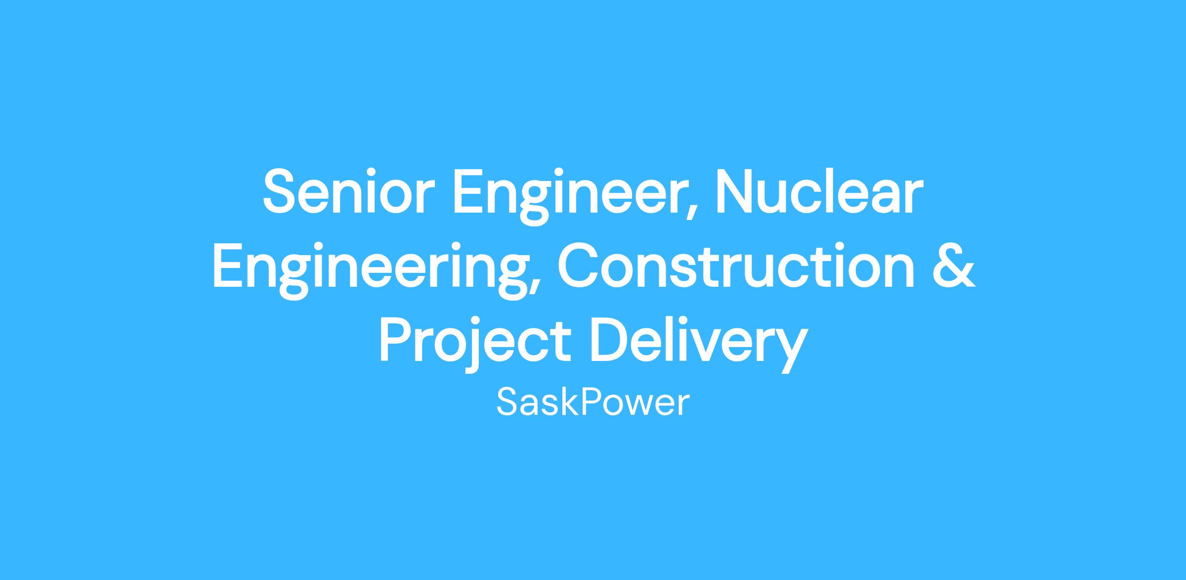This role involves leadership and accountabilities critical to the site evaluation, licensing, construction, and delivery of SaskPower’s BWRX-300 Small Modular Reactor nuclear project. This position ensures compliance with nuclear industry best practices and the requirements of the Canadian Nuclear Safety Commission.