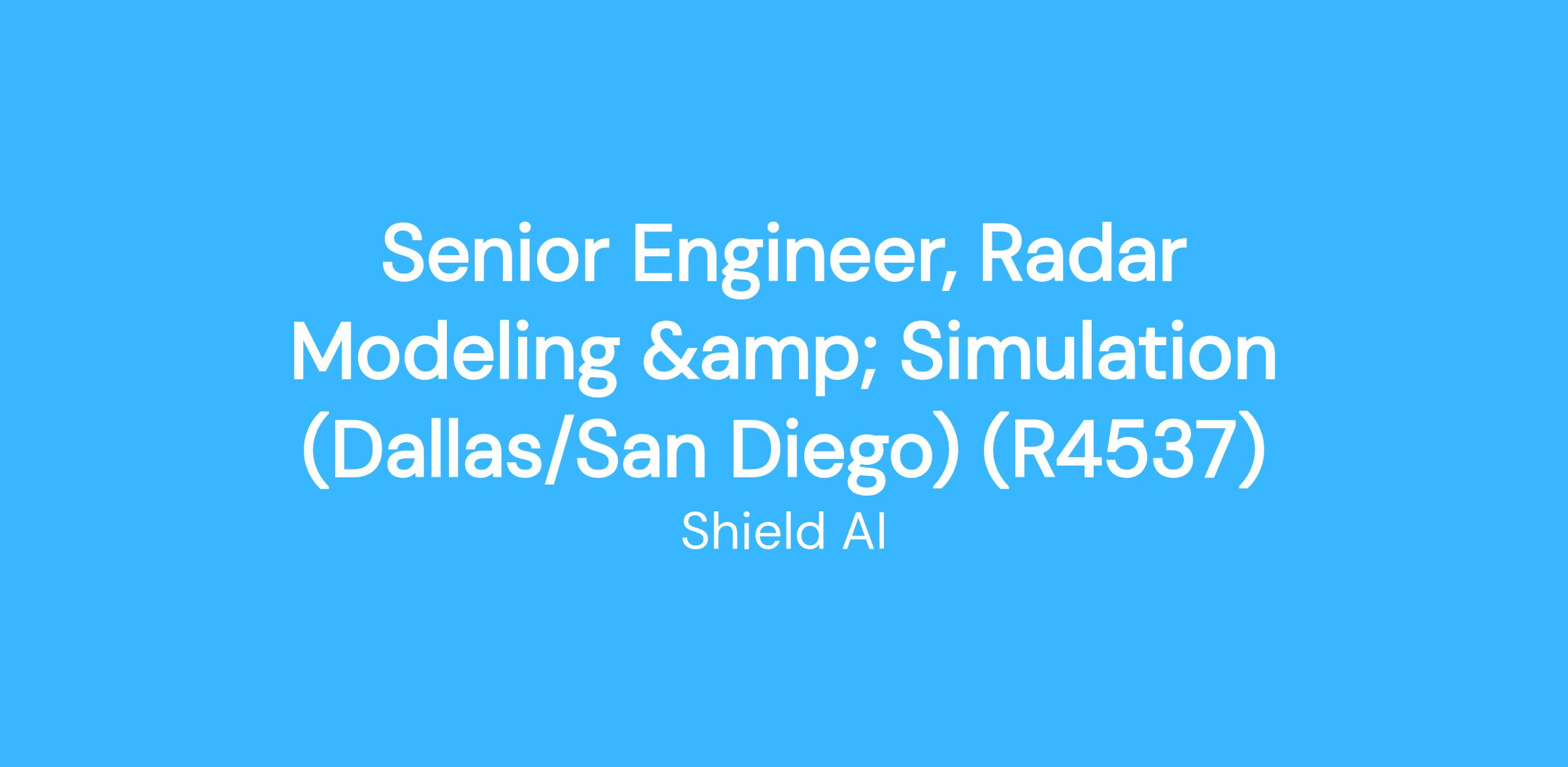 What You'll Do- Develop and enhance radar sensor models for use in simulation and evaluation of aeronautical vehicles.