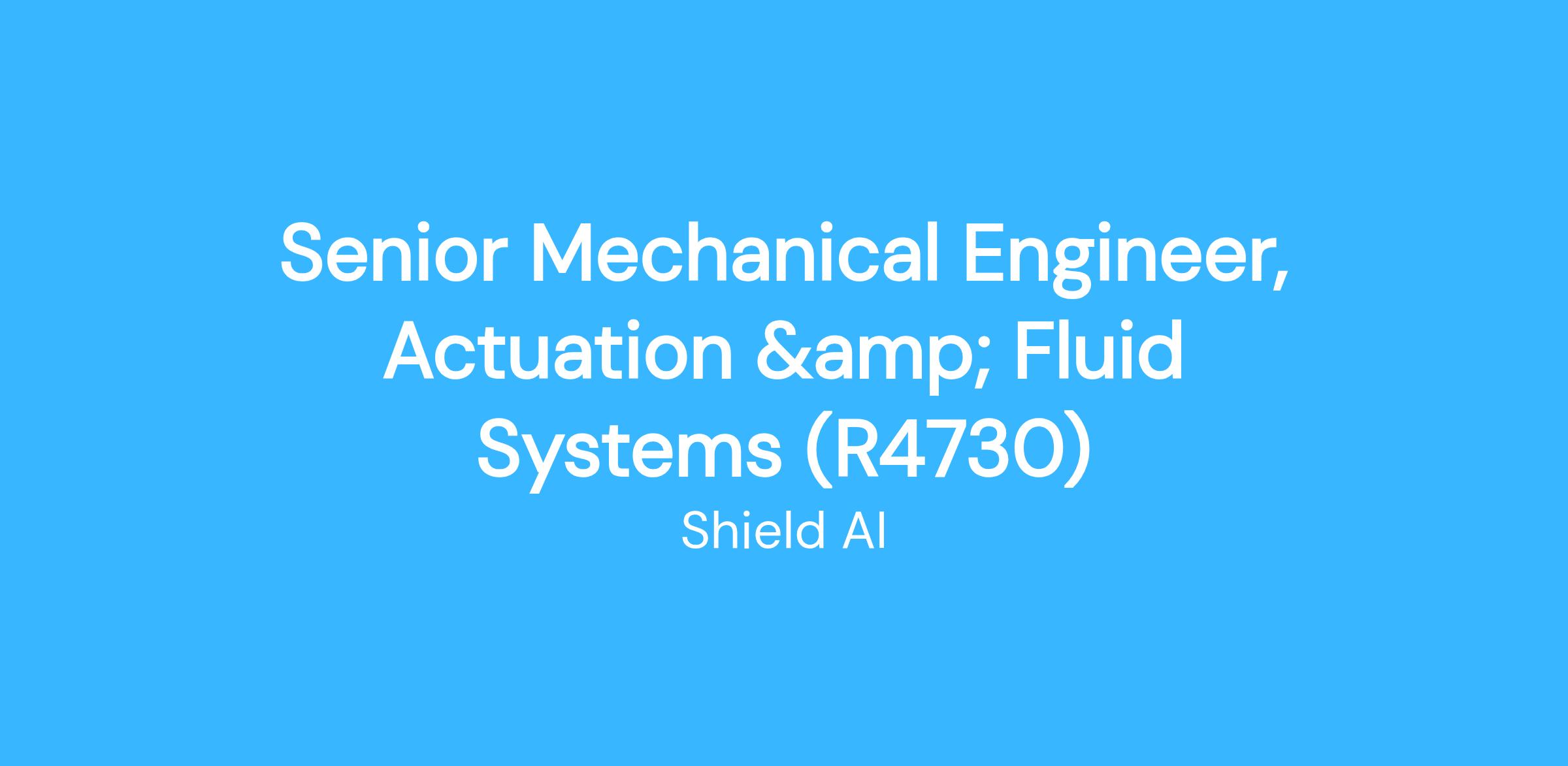 Shield AI is seeking a Actuated and Fluid Systems Engineer to support development of hydraulic and actuated systems for our groundbreaking jet-engine VTOL military UAV platform, X-BAT. You will design components and fluid systems, engage with suppliers, perform system and component analysis and sizing, and own multiple aspects of X-BAT’s hydraulics and actuation systems.