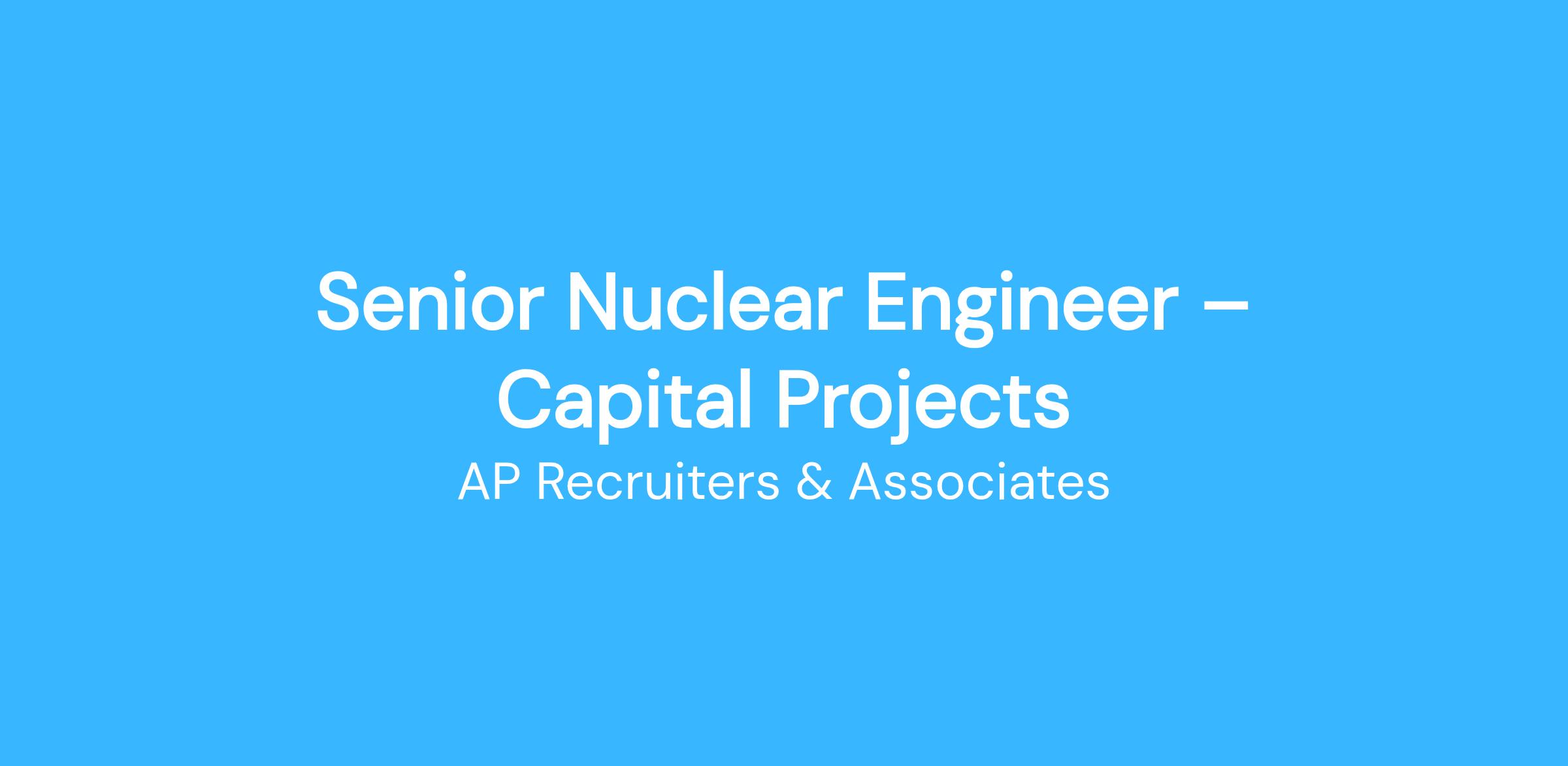 Senior Nuclear Engineer – Capital Projects (Level 4 Lead)