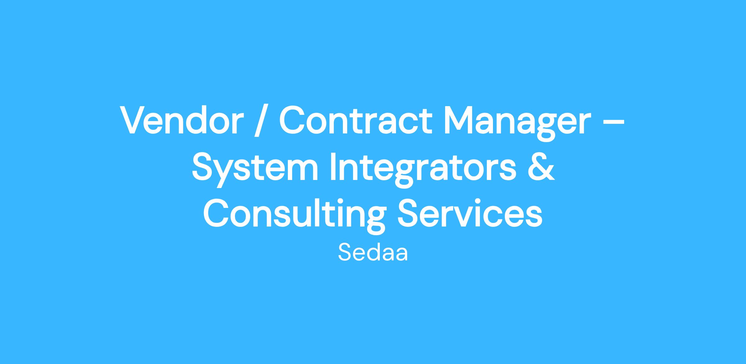 Overview:We are seeking an experienced Contract Manager to lead vendor and contract governance for key System Integration (SI) consulting partners supporting large-scale enterprise programs. This role is focused on post-award vendor management and contract oversight, not strategic sourcing.